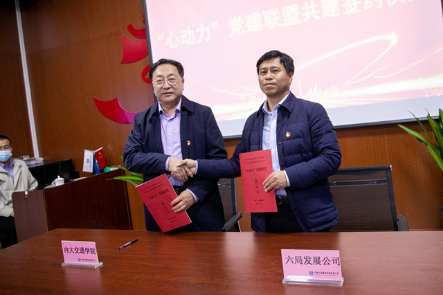 為探索新時代下基層黨建工作新思路、新模式,充分發(fā)揮校企資源優(yōu)勢,進一步推動校企發(fā)展融合,2020年11月20日,我院與中建六局建設(shè)發(fā)展公司聯(lián)合開展校企共建活動。內(nèi)蒙古大學(xué)學(xué)生就業(yè)處處長曹海鷹、副處長謝峻鵬,中建六局建設(shè)發(fā)展公司黨委副書記總經(jīng)理杜三聰、西北分公司黨總支副書記劉青山、港灣項目項目經(jīng)理趙曉建,我院副院長孫恒、黨委宣傳部部長高飛、學(xué)工處處長于憲鵬、道路工程系黨總支書記張萬祥出席本次活動。