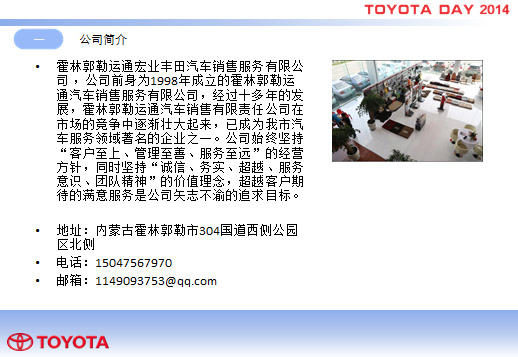 霍林郭勒運(yùn)通宏業(yè)豐田汽車銷售服務(wù)有限公司