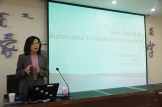 2014年11月5日上午,學(xué)院邀請(qǐng)美國(guó)新澤西理工大學(xué)土木與環(huán)境工程系交通規(guī)劃劉榮芳教授在交通樓A351會(huì)議室做了題為“新范式—自動(dòng)交通運(yùn)輸系統(tǒng)(New Paradigm: Automated Transportation Systems)”的學(xué)術(shù)報(bào)告。運(yùn)輸工程系副主任(主持工作)王征宇副教授主持講座。運(yùn)輸工程系、科研處及相關(guān)學(xué)科的教師和學(xué)生100多人聽取了講座。