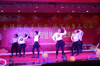 晚會以舞蹈《開門紅》正式拉開帷幕。共分為兩個篇章:以歌曲《拜新年》、舞蹈《閃耀的世界》、啞劇《診室風波》、舞蹈《宮商角徵羽》、歌曲《我的父親是牧馬人》、小品《鬧元旦》表達第一篇章“駿馬踏蹄辭舊歲,羚羊翹首迎新來”,表達了對同學們新年的美好祝愿。同學們用自己的表演方式給老師和同學們帶來快樂,精彩的演出更是讓觀眾們掌聲不斷;以歌曲《畢業(yè)歌》、舞蹈《黎明》、朗誦《匆匆那年》、歌伴舞《為你寫詩》、小品《與青春有關的日子》、歌曲《相親相愛》詮釋了第二篇章“驕子圓夢展宏圖,學府育才奏華章”,表達了對畢業(yè)生的不舍以及母校師生對他們的祝福。畢業(yè)生代表們,用舞蹈、朗誦、小品的精彩演出,告訴母校,他們的不舍和對母校真摯的祝愿。在觀看過程中,很多畢業(yè)生都留下了眼淚。