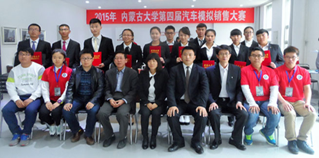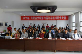 5月6號下午,內(nèi)蒙古大學(xué)第四屆汽車模擬銷售大賽決賽在交通學(xué)院汽車工程系汽車銷售展廳舉行。出席本次比賽的嘉賓有:內(nèi)蒙古大學(xué)交通學(xué)院黨委副書記、紀(jì)委書記白托婭,黨群工作部部長李廣武,教務(wù)處副處長趙麗珠,學(xué)工處副處長季秋成,學(xué)工處副處長馮俊杰,汽車工程系副主任李政,運(yùn)昌駕校業(yè)務(wù)經(jīng)理蘇和先生。內(nèi)蒙古泰隆汽車服務(wù)公司東風(fēng)標(biāo)致4S店總經(jīng)理周永新女士、中升豐田汽車服務(wù)營銷有限公司銷售總監(jiān)任彥兵先生、神龍公司營銷培訓(xùn)講師姚延剛老師、第三屆汽車模擬銷售大賽總冠軍陳濤同學(xué)擔(dān)任決賽評委。汽車工程系黨總支鐘懷軍書記致詞并宣布比賽開始。