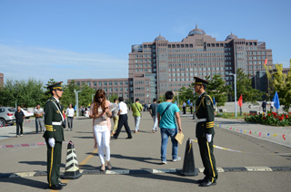 國旗班站崗維護(hù)現(xiàn)場秩序 |