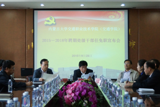 2015年9月28日下午,在交通樓A439會議室,校黨委召開交通職業(yè)技術(shù)學院(交通學院)2015—2018年聘期處級干部任免職宣布會。