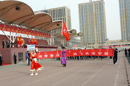 黨委副書(shū)記、紀(jì)委書(shū)記白托婭代表學(xué)院黨政領(lǐng)導(dǎo)致開(kāi)幕詞。她說(shuō),一年一度的田徑運(yùn)動(dòng)會(huì)是學(xué)院貫徹“立德樹(shù)人”教育思想,全面落實(shí)素質(zhì)教育,響應(yīng)團(tuán)中央“走下網(wǎng)絡(luò)、走出宿舍、走向操場(chǎng)”倡議的重要載體,是對(duì)全院群眾性體育工作成果和師生員工運(yùn)動(dòng)水平的一次檢閱,也是對(duì)廣大師生員工競(jìng)爭(zhēng)意識(shí)、團(tuán)隊(duì)精神、頑強(qiáng)意志的一次考驗(yàn),更是全院師生員工精神風(fēng)貌的一次全面展示,已經(jīng)成為校園生活的重要組成部分。高等學(xué)校作為國(guó)家高層次人才培養(yǎng)的重要基地,同學(xué)們的體質(zhì)與健康事關(guān)國(guó)家和民族的未來(lái)。她號(hào)召大家,要以此次運(yùn)動(dòng)會(huì)為契機(jī),繼續(xù)廣泛開(kāi)展“陽(yáng)光體育”,積極倡導(dǎo)“三走”,多種方式加強(qiáng)校園體育文化建設(shè),積極營(yíng)造人人關(guān)心、人人參與體育活動(dòng)的氛圍,我們堅(jiān)信,在學(xué)校黨委和學(xué)院黨委的堅(jiān)強(qiáng)領(lǐng)導(dǎo)下,我院全體師生員工將以更加健康的體魄,更加昂揚(yáng)的姿態(tài),更加飽滿的熱情投入到學(xué)院各項(xiàng)事業(yè)的建設(shè)中來(lái)!