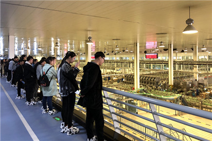 在了解了蒙牛乳業(yè)的歷史沿革、企業(yè)理念及產(chǎn)品推廣等基本情況后,全體同學在講解員的帶領(lǐng)下進入了生產(chǎn)區(qū)。生產(chǎn)車間、包裝車間、倉儲車間幾乎全部實現(xiàn)自動化,各類機械高效、有序的協(xié)作,整個生產(chǎn)線有條不紊的運轉(zhuǎn)著,源源不斷生產(chǎn)出各類乳制品,并最終分類入庫。同學們紛紛駐足觀看,不時記錄并討論?,F(xiàn)代化的物流設(shè)施設(shè)備展現(xiàn)在他們眼前,動態(tài)的包裝加工、分揀入庫等環(huán)節(jié)使同學們對物流活動的各個環(huán)節(jié)有了更加具象和生動的認識。