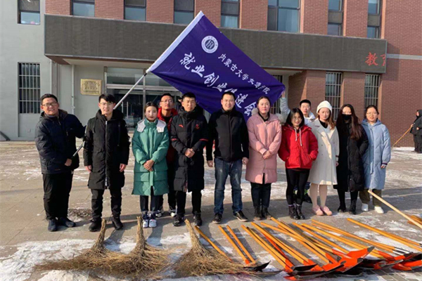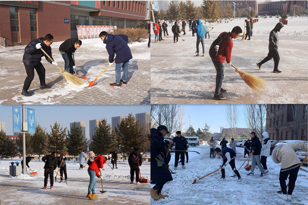今冬呼和浩特的初雪在上周末如約而至,校園內銀裝素裹,分外妖嬈,白雪覆蓋了整個校園,為校園平添了新的色彩,但同時校園道路積雪也給師生出行帶來了安全隱患。為盡快消除積雪影響,方便師生出行,方便師生出行,12月2日上午,學院團委、就業(yè)指導中心組織學生會、就業(yè)創(chuàng)業(yè)促進會、國旗班、軍樂團、心理健康教育中心等部分學生干部和卓越工程師班的同學們開展義務掃雪活動。