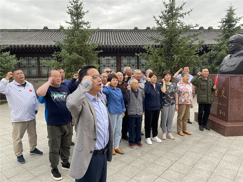 首先,全體黨員佩戴黨徽走近革命先輩烏蘭夫雕像,帶著無限敬仰和崇高敬意,向?yàn)跆m夫同志雕像三鞠躬致敬。接著,面對(duì)黨旗,全體黨員再一次莊嚴(yán)宣誓,重溫了入黨時(shí)的決心和信念,進(jìn)一步激發(fā)了傳承紅色基因、賡續(xù)紅色血脈的責(zé)任感和使命感。
