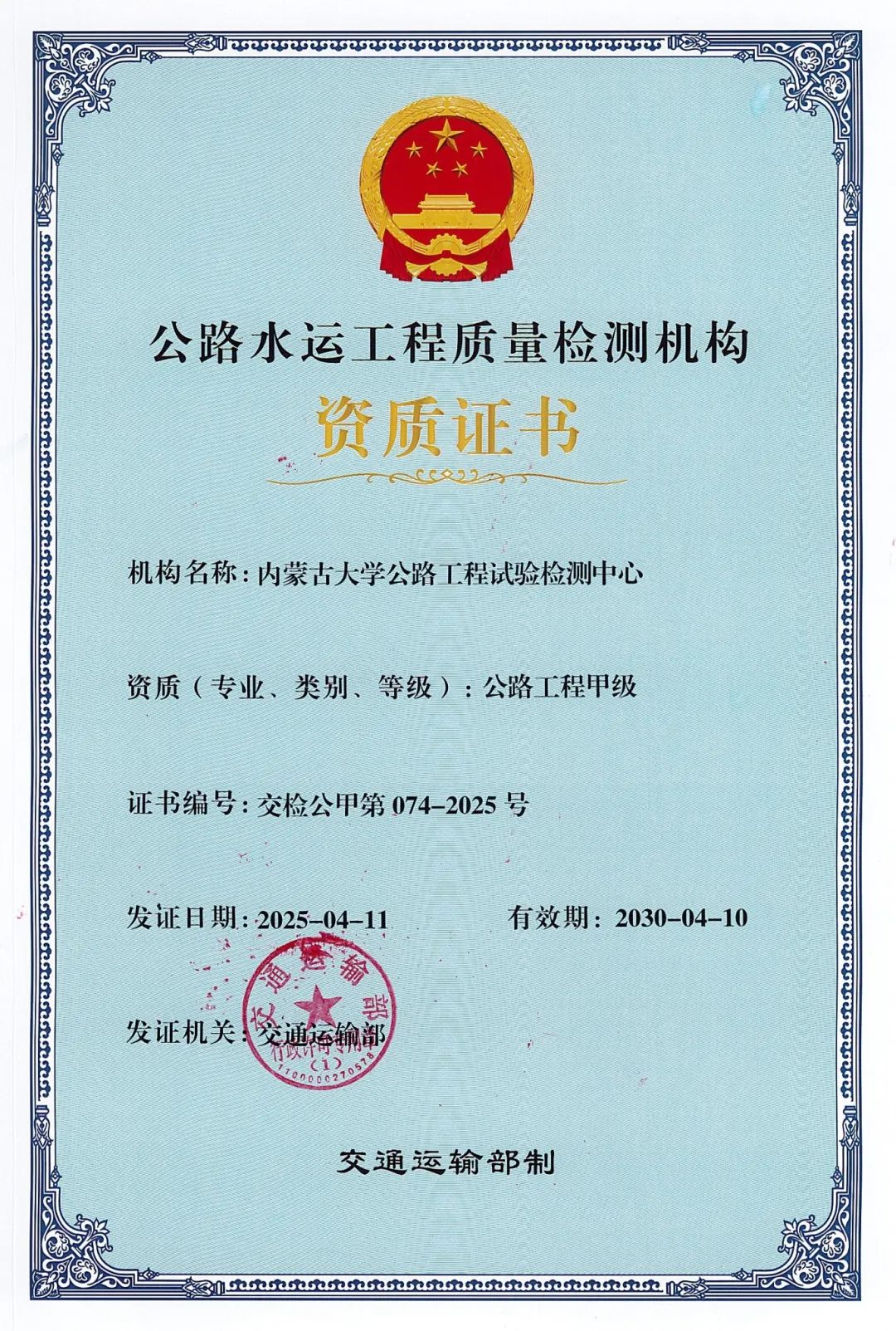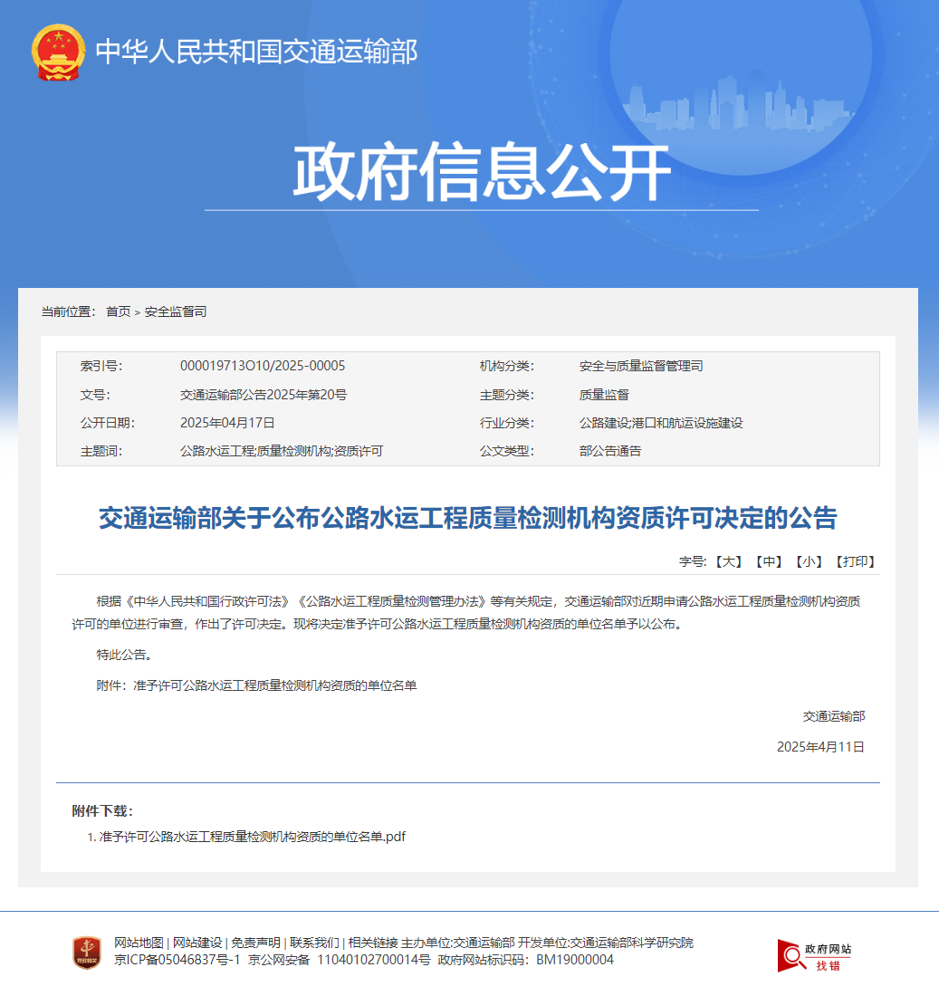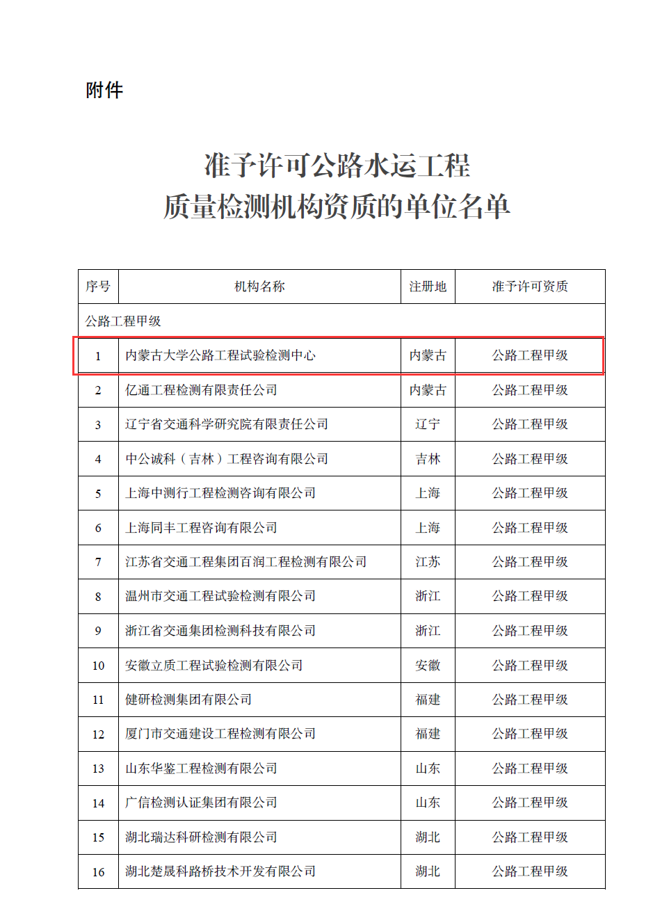 近日,內(nèi)蒙古大學(xué)公路工程試驗(yàn)檢測(cè)中心(以下簡(jiǎn)稱(chēng) “檢測(cè)中心”)成功通過(guò)交通運(yùn)輸部公路工程甲級(jí)資質(zhì)延續(xù)審批,充分彰顯了檢測(cè)中心在公路工程檢驗(yàn)檢測(cè)領(lǐng)域的深厚積淀與綜合實(shí)力。