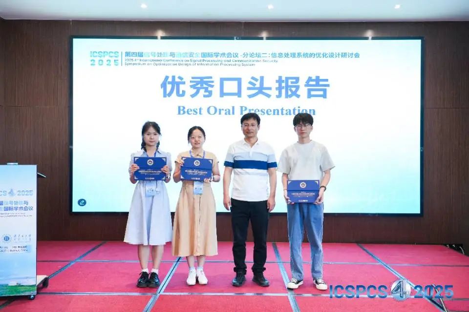 組委會對現(xiàn)場口頭報(bào)告表現(xiàn)優(yōu)異的學(xué)者頒發(fā)【優(yōu)秀口頭報(bào)告獎(jiǎng)】,通過表彰優(yōu)秀的科研人才與科研成果,希望能夠激勵(lì)更多學(xué)者在領(lǐng)域前沿不斷探索。至此,第四屆信號處理與通信安全國際學(xué)術(shù)會議(ICSPCS 2025)在專家學(xué)者熱烈討論的氛圍下圓滿落幕!