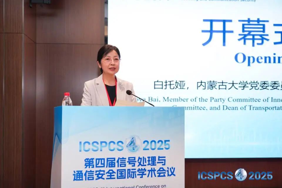 內(nèi)蒙古大學(xué)張宏教授主持開幕式。內(nèi)蒙古大學(xué)黨委委員、交通學(xué)院黨委副書記、院長白托婭為大會致辭,對蒞臨本次會議的各位專家學(xué)者致以最真誠的問候與熱烈的歡迎,同時(shí)指出高質(zhì)量的國際會議不僅給相關(guān)領(lǐng)域的科研人員和專家學(xué)者搭建了交流溝通的平臺,而且能有效推動(dòng)學(xué)院學(xué)科的建設(shè)與發(fā)展。她衷心祝愿各位專家學(xué)者在未來的合作中取得更加豐碩的成果,共同為信號處理與通信安全領(lǐng)域的進(jìn)步與發(fā)展注入動(dòng)力。